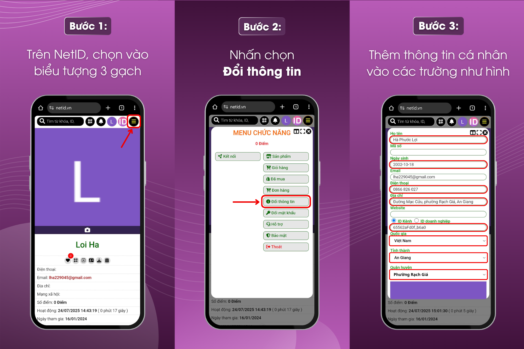 Chúc mừng bạn đã cập nhật thành công thông tin cá nhân NetID!