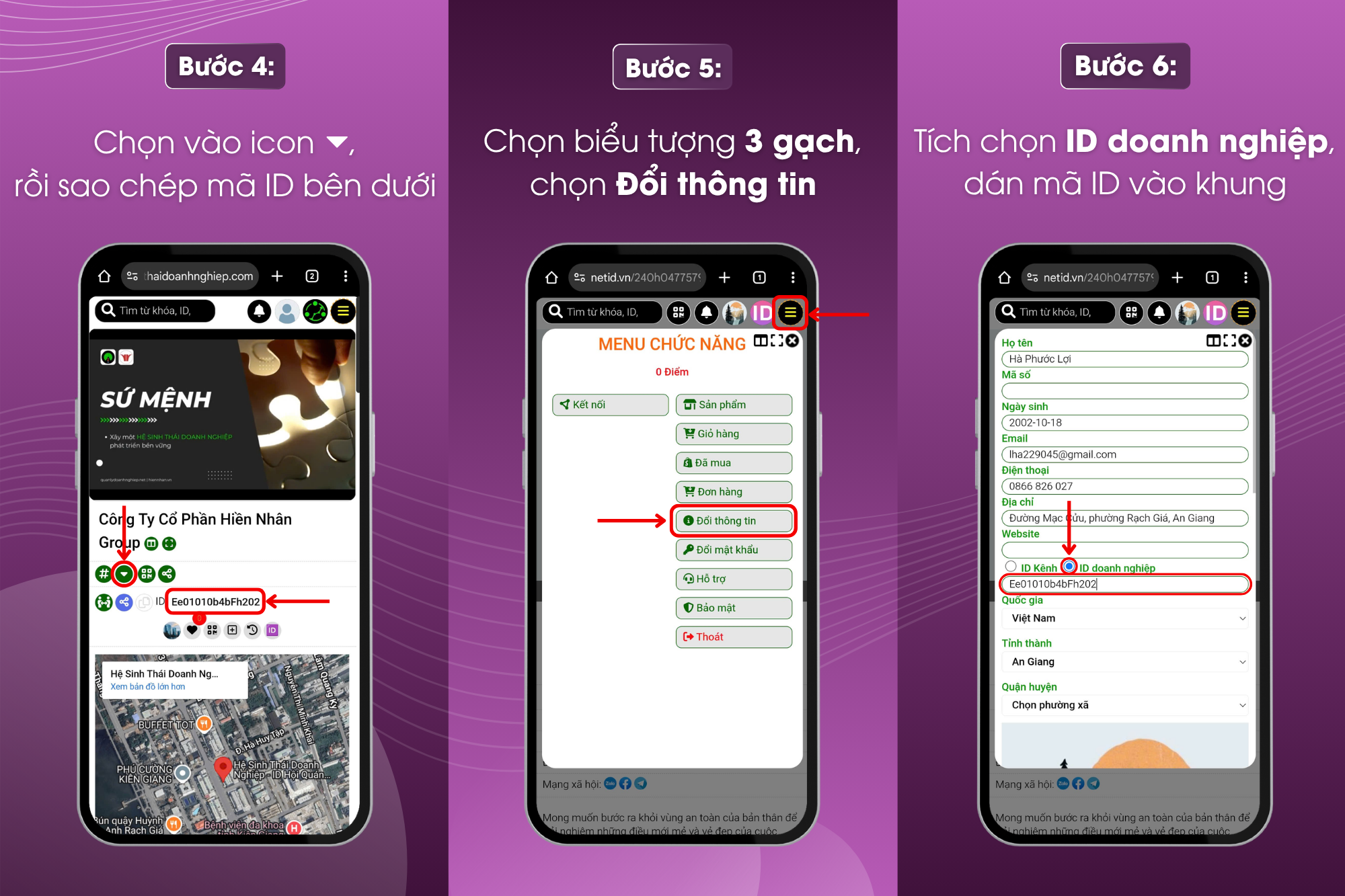 Bước 6: Tích chọn vào ID Doanh nghiệp, dán mã ID Doanh nghiệp vừa sao chép vào khung bên dưới