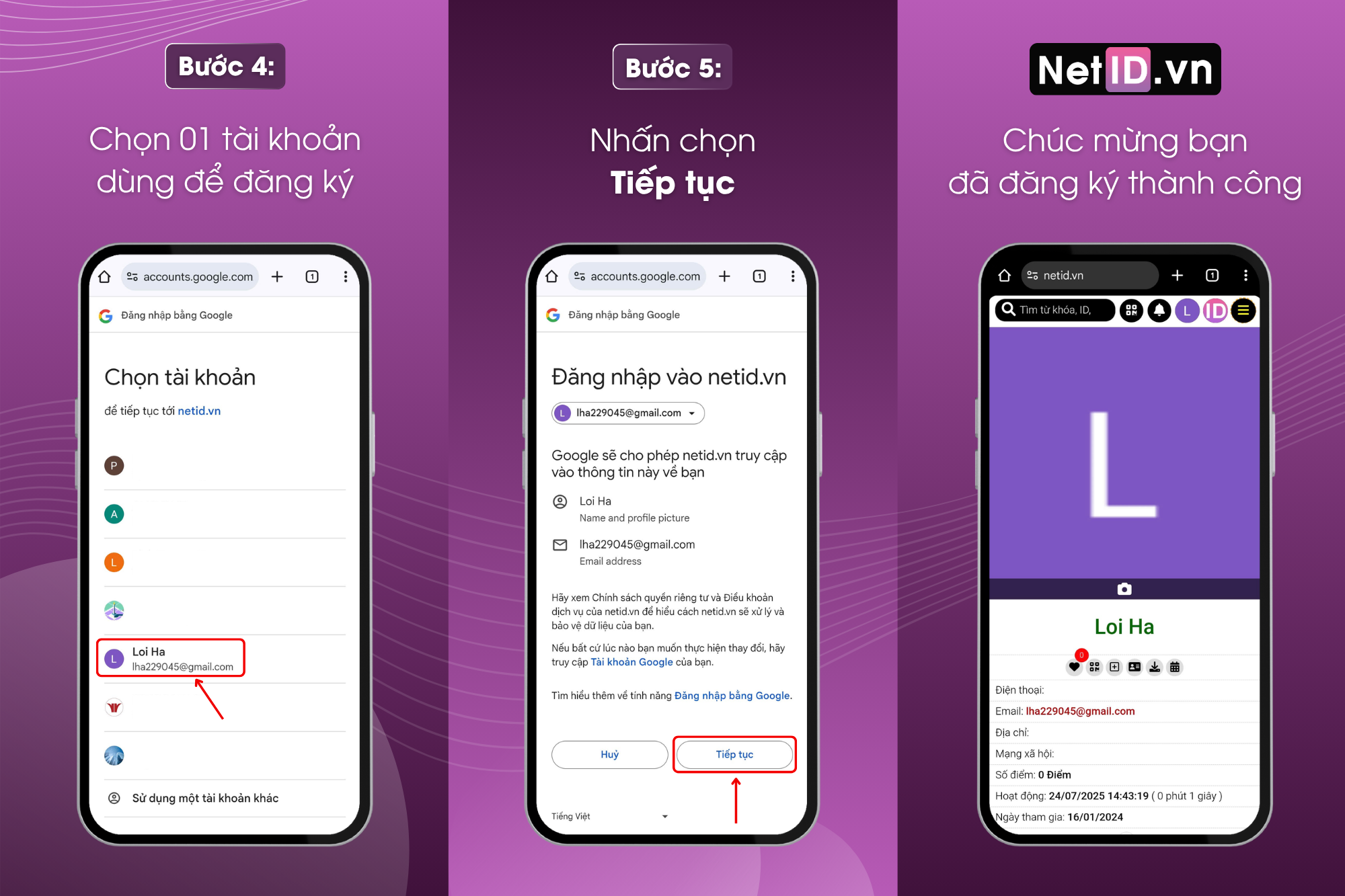 Chúc mừng bạn đã đăng ký thành công tài khoản NetID