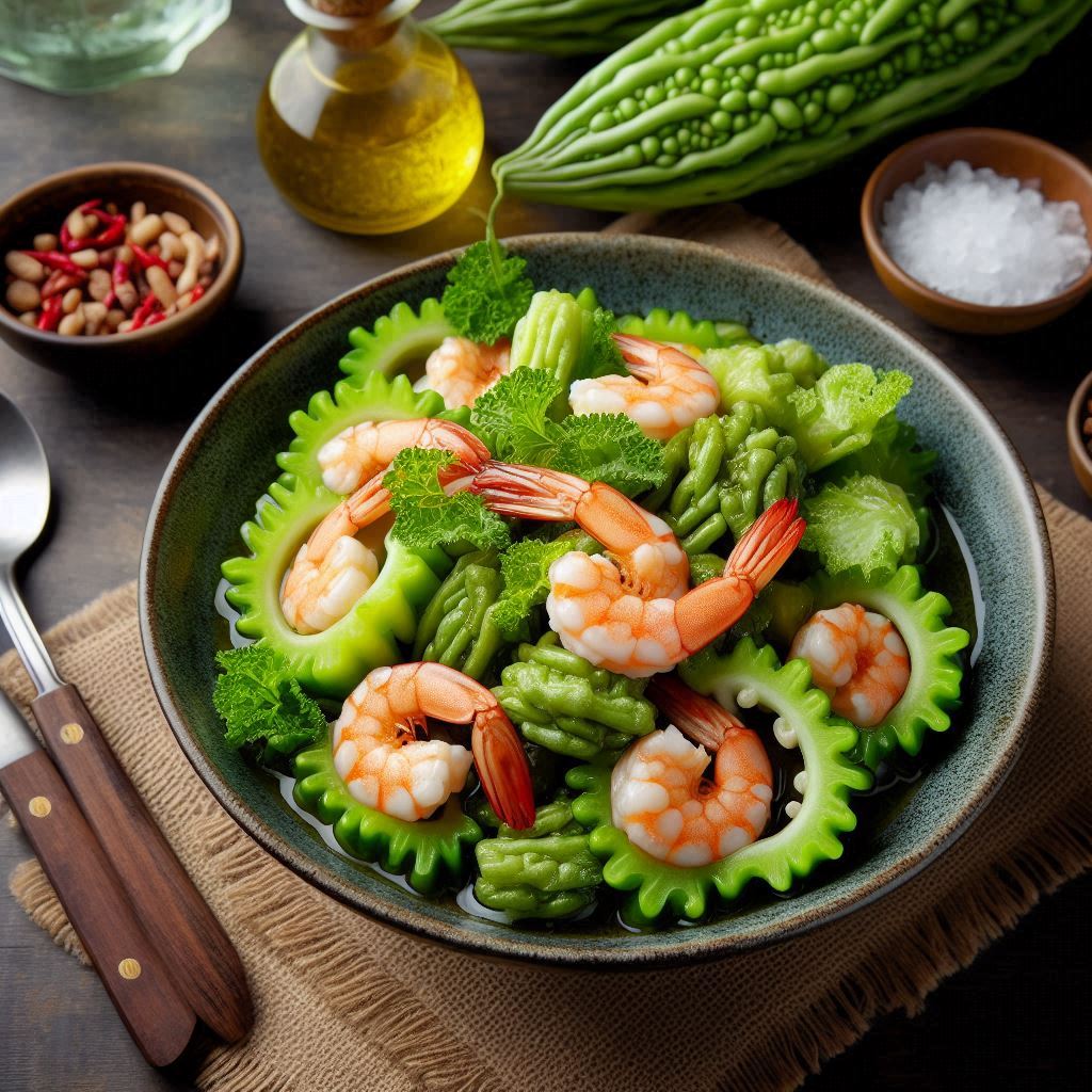 Cho gỏi khổ qua tôm thị ra đĩa, trang trí cho đẹp mắt và thưởng thức ngay. Món ăn này có vị béo ngọt từ tô, cùng vị mềm đậm đà từ thịt heo, kết hợp với nước mắm chua ngọt và khổ qua tươi mát, giúp bạn có trải nghiệm ẩm thực thú vị.