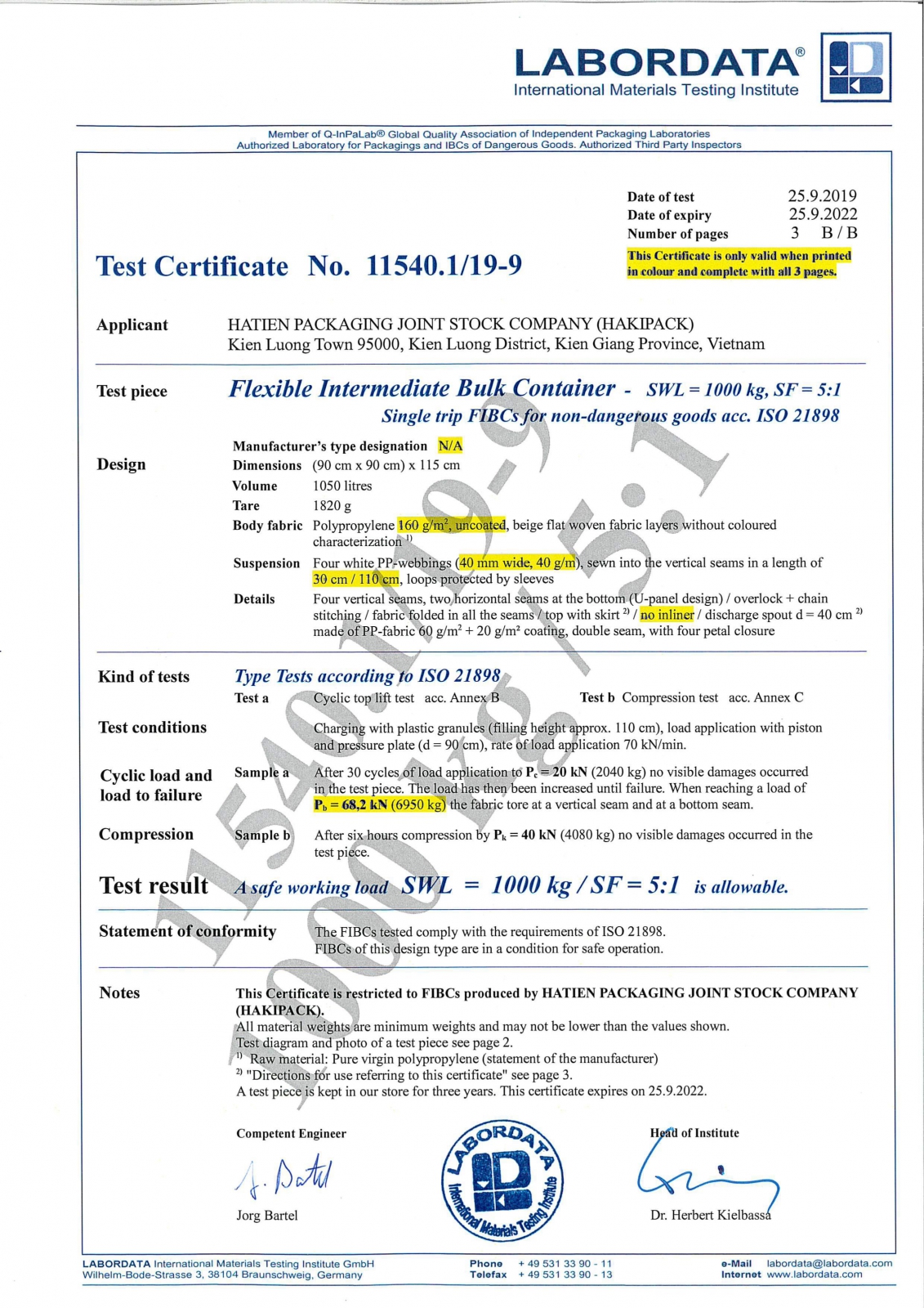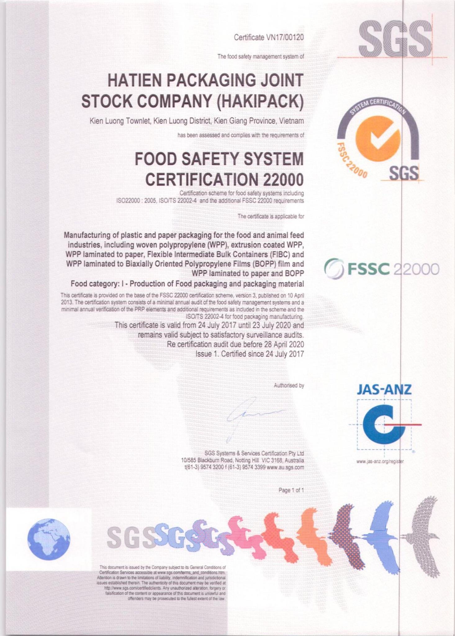 Luôn vấp phải sự cạnh tranh hết sức gay gắt từ các nhà sản xuất cùng loại sản phẩm trong và ngoài nước, sản phẩm cuả Hakipack không những đứng vững mà còn được khách hàng ưa chuộng, hợp tác lâu dài. Thành công này bắt nguồn từ chính sách chất lượng, tôn trọng khách hàng, luôn thực hiện quản lý chất lượng sản phẩm theo ISO 9001 và hệ thống quản lý môi trường ISO 14001được tổ chức TUV Rhemland chứng nhận. Sản phẩm cuả Hakipack đạt tiêu chuẩn Châu Âu, được kiểm tra bởi phòng thí nghiệm Laboratoire national de métrologie et d’esssais cuả Pháp và phòng thí nghiệm Bureau veritas cuả Tây Ban Nha.