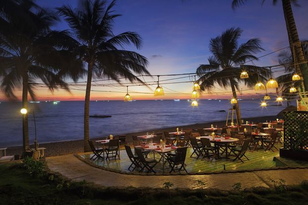 3 nhà hàng và 2 quầy bar. Có thể ngắm hoàng hôn và thưởng thức tiệc buffet cocktail tại quầy bar, tiệc buffet hải sản, thịt nướng trên bãi biển hàng đêm.