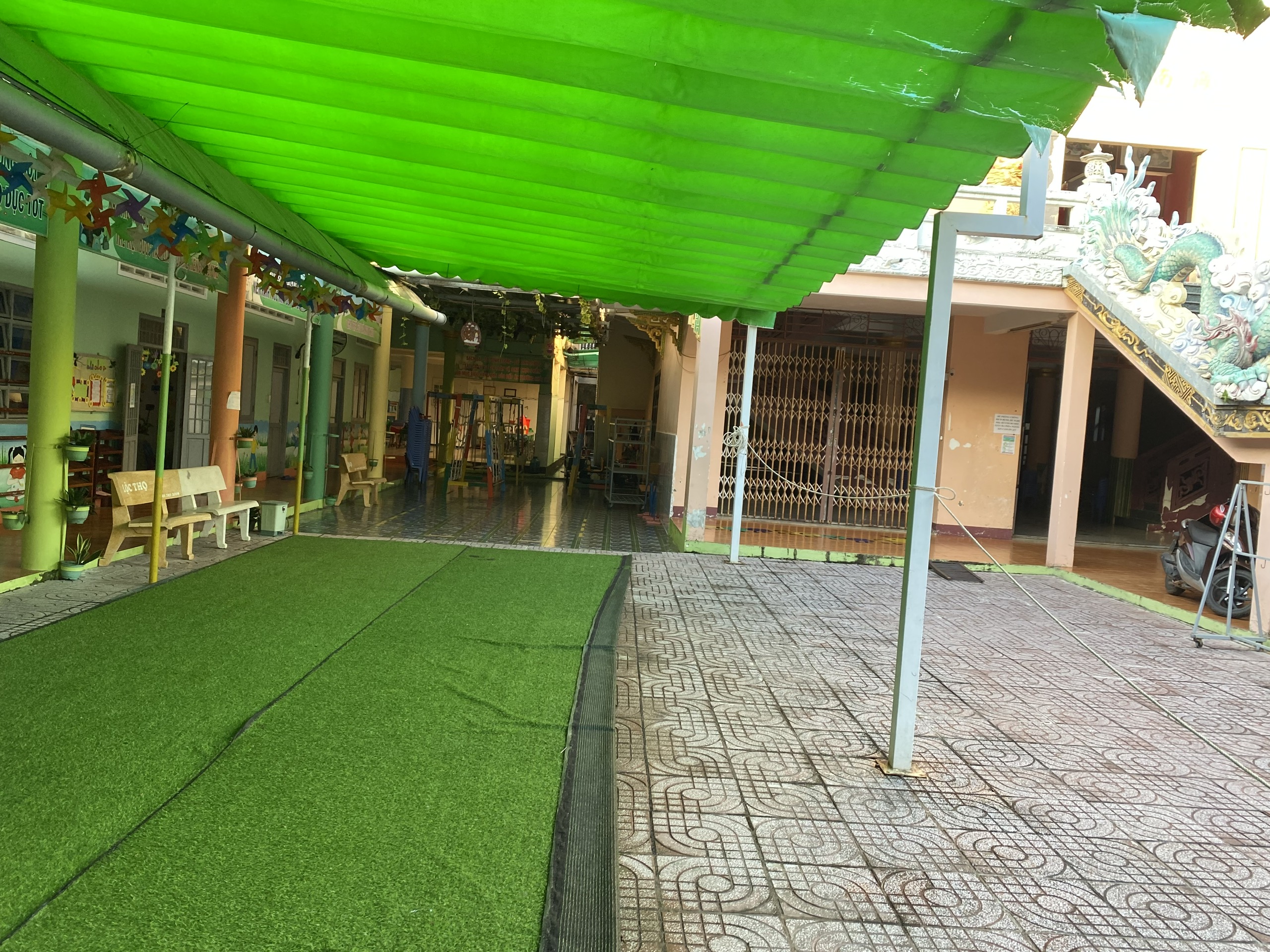 Không gian trường ấm áp, yên bình. Có phòng ăn phòng ngủ riêng biệt cho bé, không gian rộng rãi, thông thoáng, sạch sẽ, an toàn. Các con được làm vườn ngay tại trường.