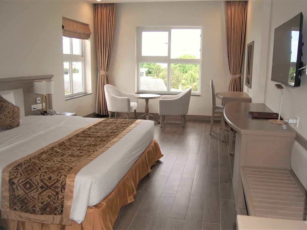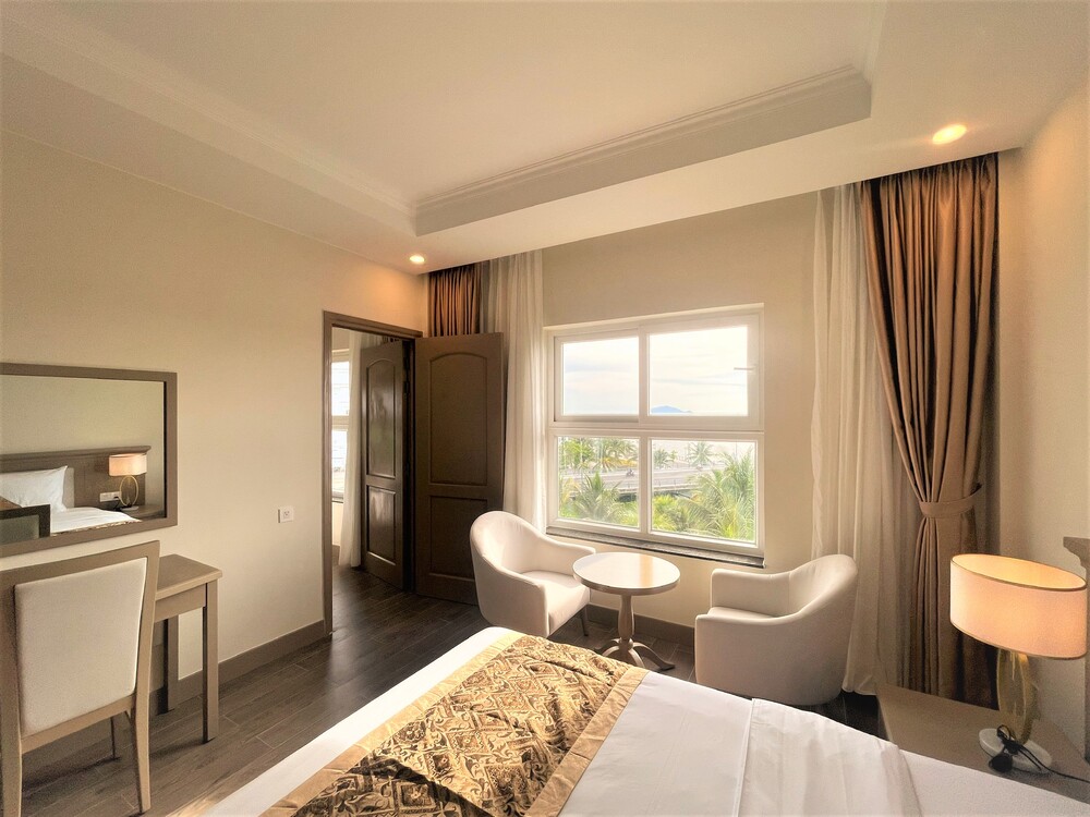 Nằm ở tầng cao nhất của khu nghỉ dưỡng, các phòng nghỉ với tầm nhìn tuyệt đẹp hướng ra biển Tây và khu đô thị mới Tây Bắc hoặc cảnh sân vườn thơ mộng của khu nghỉ dưỡng cùng thành phố Rạch Giá đáp ứng nhu cầu Quý khách về phòng nghỉ sang trọng trong thời gian lưu trú tại thành phố biển Rạch Giá.
