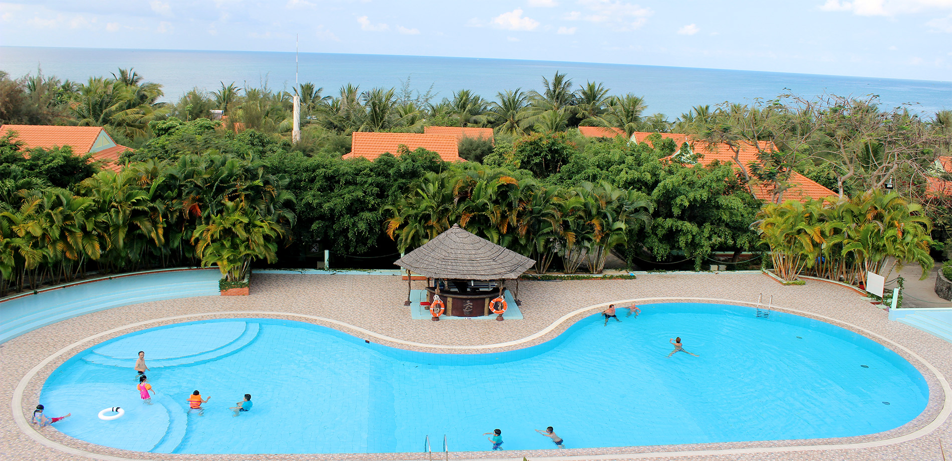 Hệ thống phòng nghỉ với 100 phòng đạt tiêu chuẩn 3 sao. Bao gồm 43 phòng khách sạn, 30 phòng biệt thự hướng biển, 10 phòng biệt thự sát biển và 1 cụm khách sạn 15 phòng sát biển và 02 phòng VIP. Tất cả các phòng đều có ban công riêng và được trang bị các tiện nghi vật dung đạt tiêu chuẩn 3 sao.