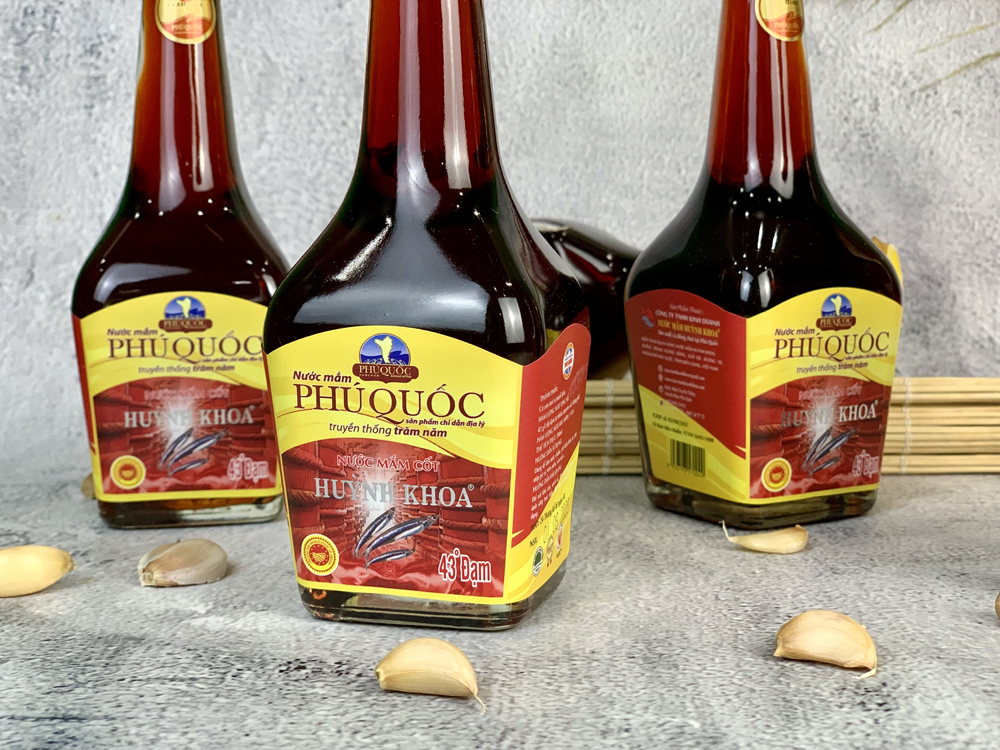 Nước Mắm Truyền Thống Cốt Nhĩ Huỳnh Khoa 43 đạm là một sản phẩm đặc sản của vùng biển đảo ngọc Phú Quốc xinh đẹp Sản phẩm được sản xuất theo phương pháp truyền thống trong dây chuyền khép kín ngoài ra sản phẩm còn đạt được chỉ dẫn địa lý do liên minh 28
