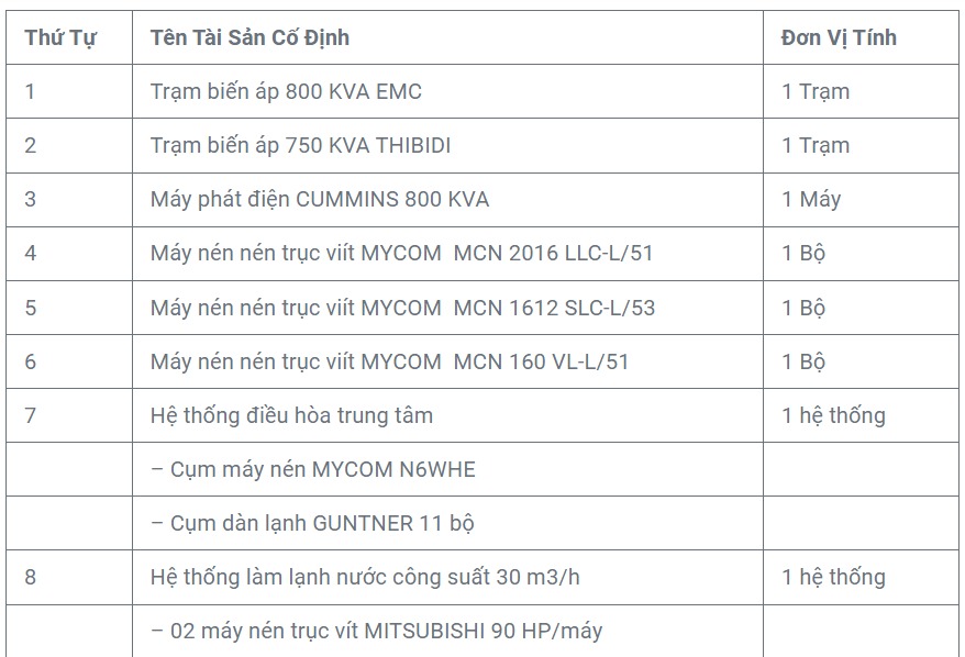 - 04 tủ đông, sản lượng 15 tấn/ngày