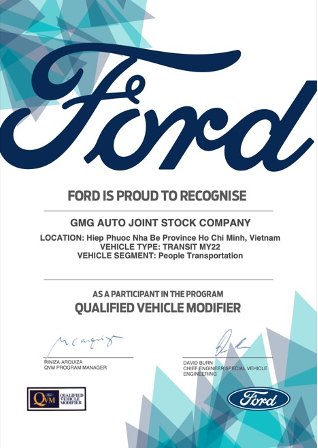 Ford cấp chứng chỉ đơn vị nâng cấp đạt chuẩn (QVM) cho các dòng sản phẩm Limousine của Dcar, yếu tố giúp xác lập chuẩn mực mới tại Việt Nam.